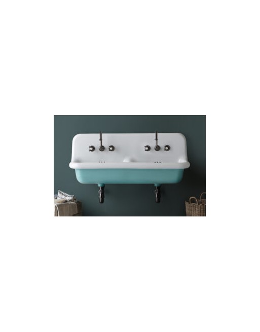 Ceramiczna podwójna umywalka ścienna Bleu Provence z serii TRUE COLORS , szer.120cm z otworami na baterie,